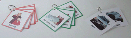 Self-help skills and academic cards can also be placed on binder rings so that they can be carried around easily. |